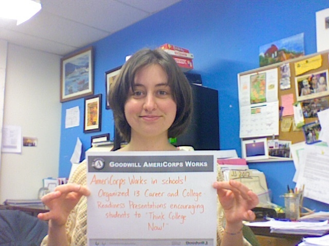 Members continued their Impact long after MLK Day through outreach during AmeriCorps Week; providing 63 AmeriCorps Week outreach efforts, ranging from editorials in local newspapers, presentations to community organizations, blog/website articles, You Tube clips, and AmeriCorps information tables at colleges/schools. Member leadership skills are recognized by the local community, with six Goodwill AmeriCorps Members receiving state Governor Service Awards in the past four years!