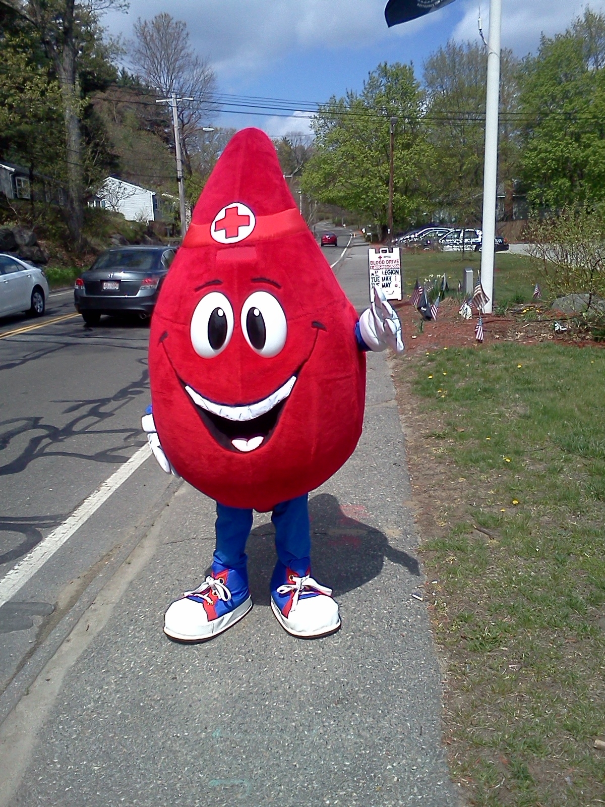 This photo is of Rebecca dressed as Buddy the Blood Drop, to promote the very first ARCEM Health & Safety Fair.