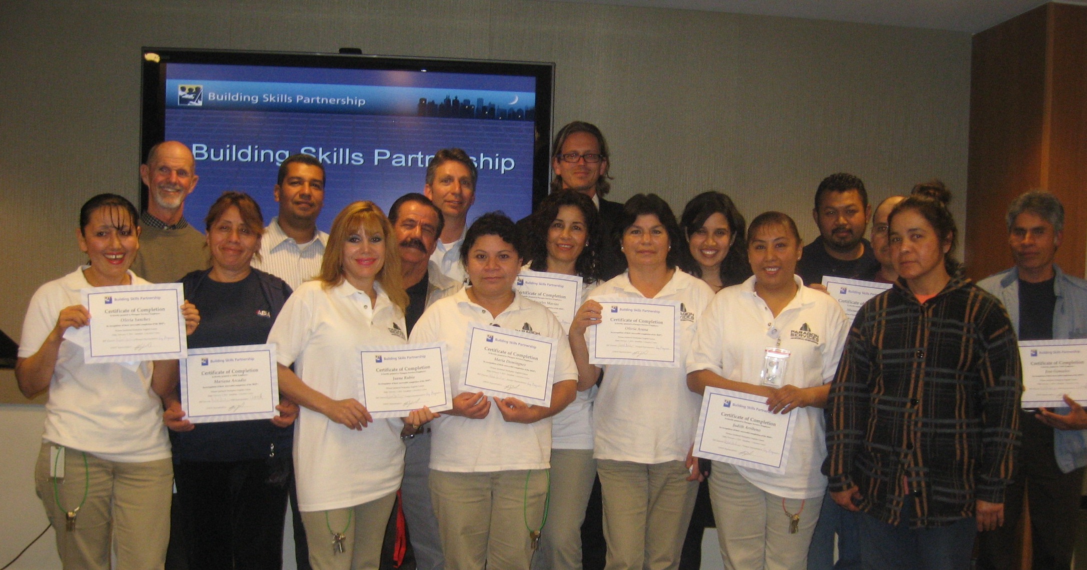 BSP serves members of the community who are often overlooked or forgotten: janitors, security officers and other low-wage workers who work in the isolation of night shifts. Since many are immigrants with limited English speaking skills and low-literacy, it is often difficult for them to fully integrate into their communities. It is even more challenging for them to move out of low-wage service jobs and to improve their living conditions. BSP's fundamental premise is to help these workers and their families, primarily immigrants from Latin America, integrate into the community and improve their skills and economic prospects. Though fewer than 30% of BSP participants have been formally educated beyond 6th grade level in their native countries, BSP courses consistently achieve 80% student attendance rates. This is evidence that when low-wage workers are provided with an opportunity to acquire new skills for advancement, workers eagerly embrace it and succeed. In a recent case study that documents the effectiveness of BSP's flagship training (Vocational ESL) amongst janitors, assessment results demonstrate that 100% of janitors whom received instruction at their workplace (Yahoo Corporate Office) improved at least one VESL proficiency level, as measured by adult school assessments. 57% of participants improved at least two proficiency levels and 29% improved at least three proficiency levels.